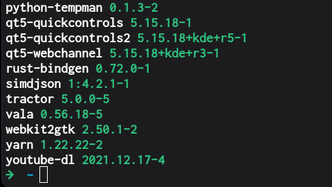 این قسمتی از خروجی دستور pacman -Qdt هست